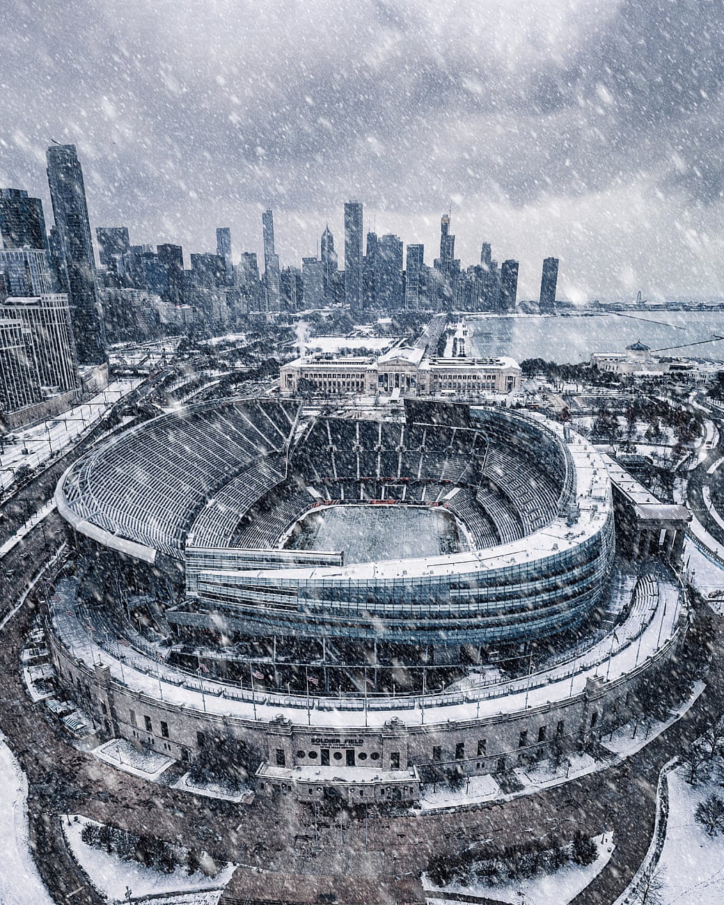 Soldier Field Blizzard, una foto del estadio de fútbol de Chicago durante una tormenta de nieve en noviembre de 2018.