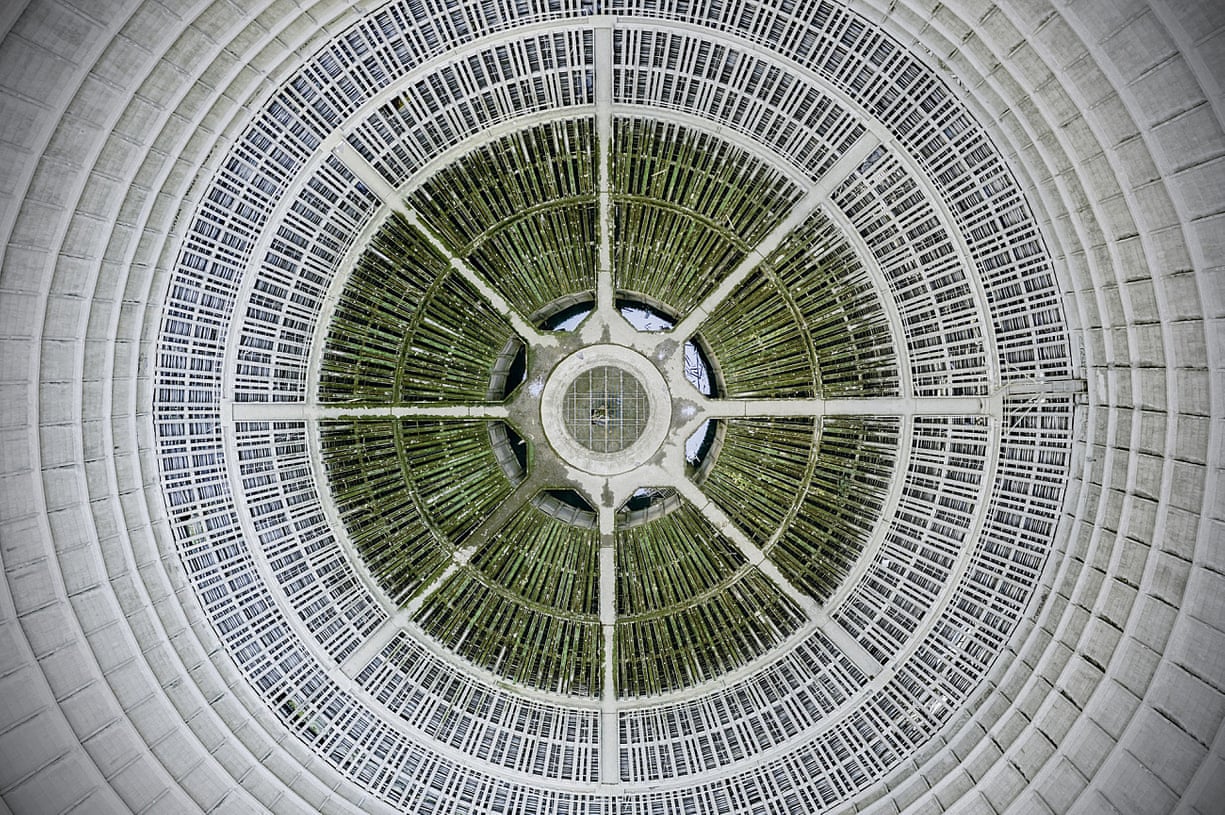 La torre de refrigeración. Una torre de refrigeración abandonada en Bélgica, vista desde el interior. Las torres de refrigeración se utilizan para eliminar el exceso de calor de las centrales eléctricas.