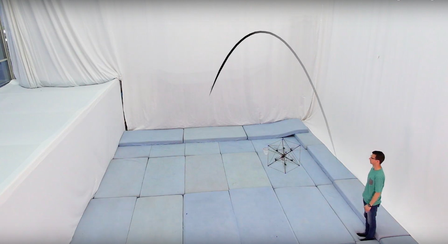 Se referían a un vídeo publicado a principios de este mes. Para mostrar las capacidades del algoritmo, enviaron un vehículo para que atrapase una pelota en una pequeña bolsa. El motivo de su trabajo ha sido la "generación computacionalmente eficiente de la trayectoria en seis grados de vehículos libres multirotor".