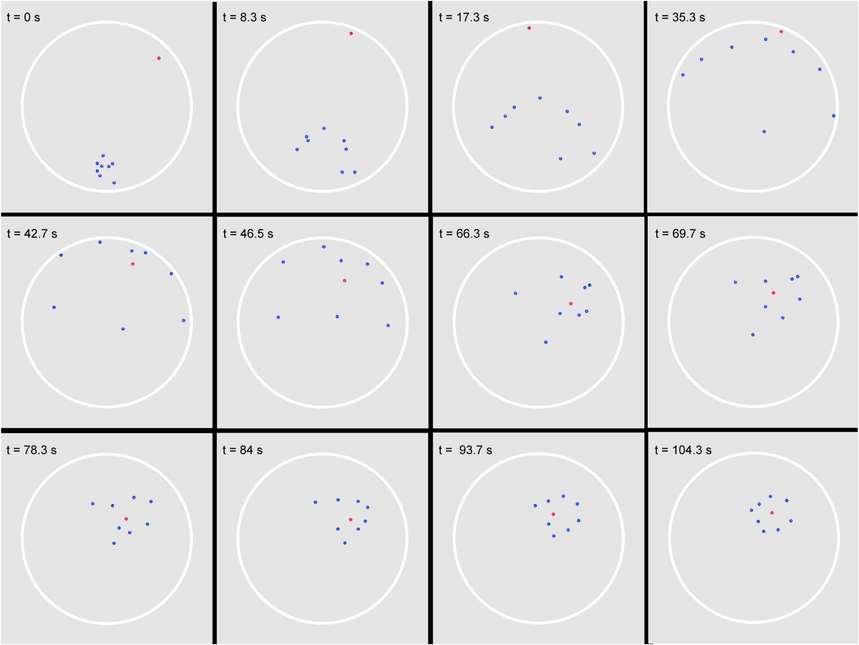 En su modelo, los investigadores también observaron el comportamiento emergente, que es el comportamiento que aparece sólo en grupos. En particular, grupos de depredadores a menudo comienzan a rodear a sus presas, y este comportamiento surge directamente de las reglas de persecución.